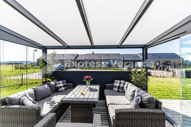 Aluminium pneumatic pergola systems allow controlled management of sunlight and ventilation through adjustable panels. They provide reliable performance across varying weather conditions.